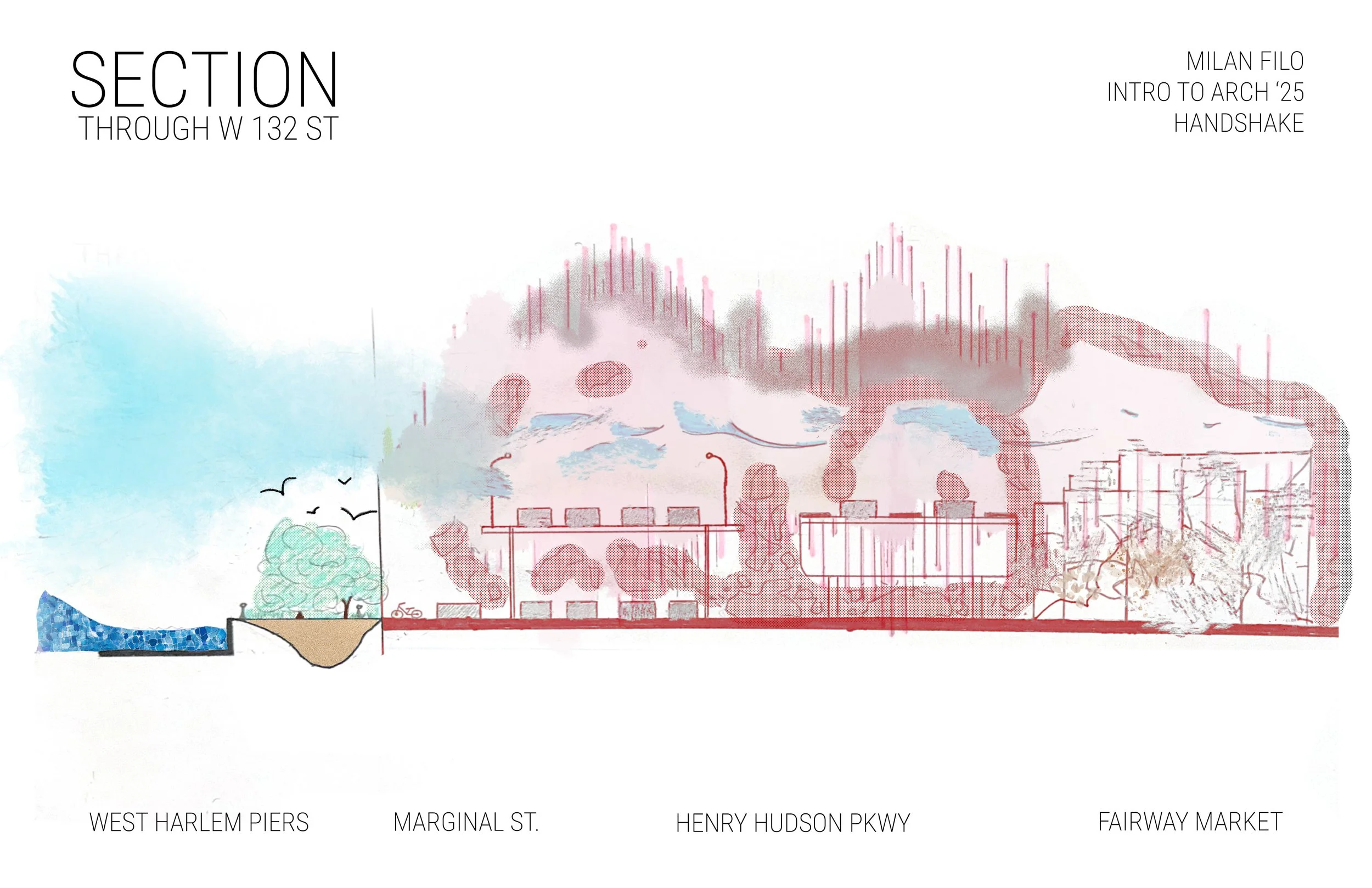 Architecture. West Harlem Piers Choreographing Architecture : Lincoln Center Silent Disco Section Through W 132 ST