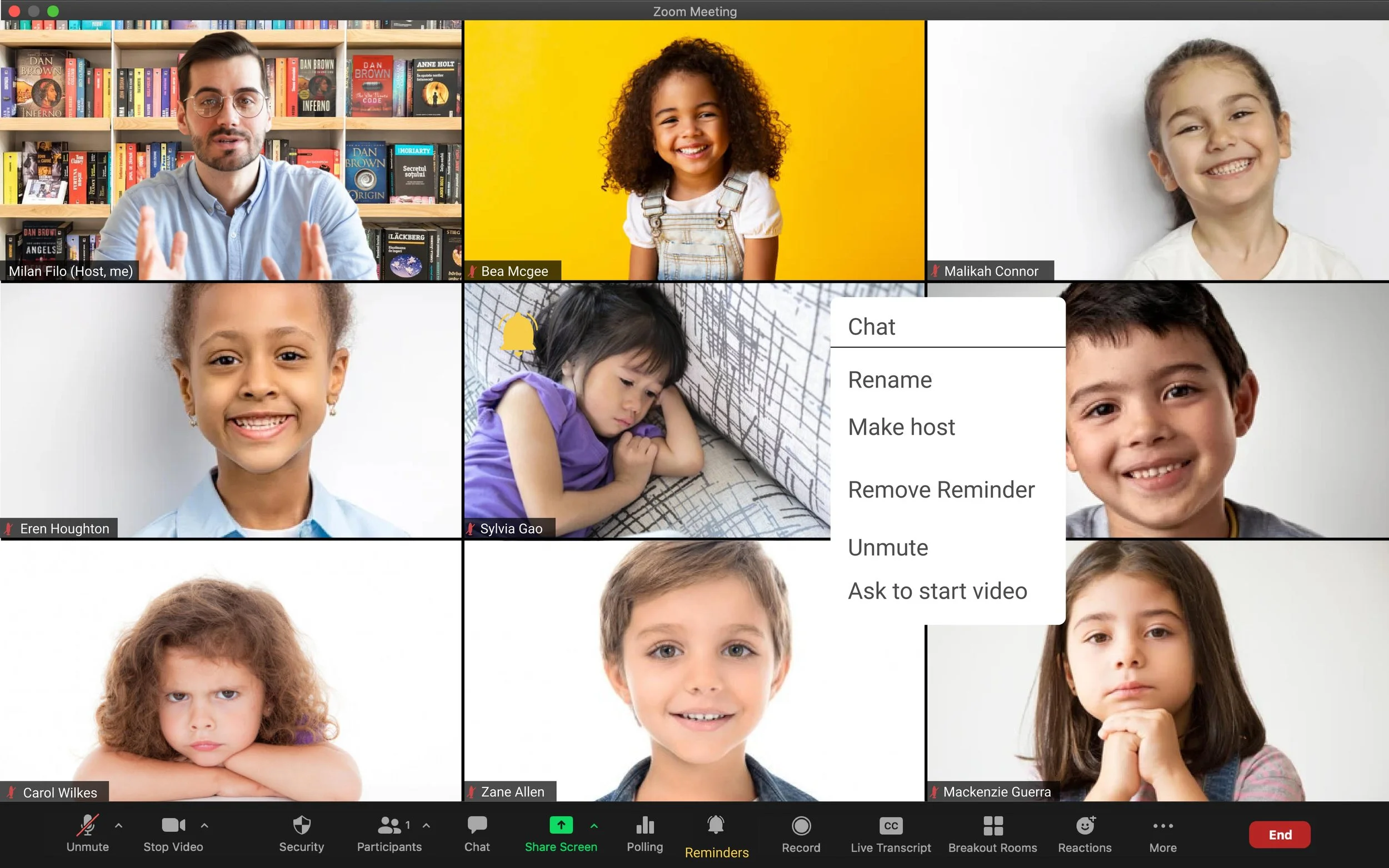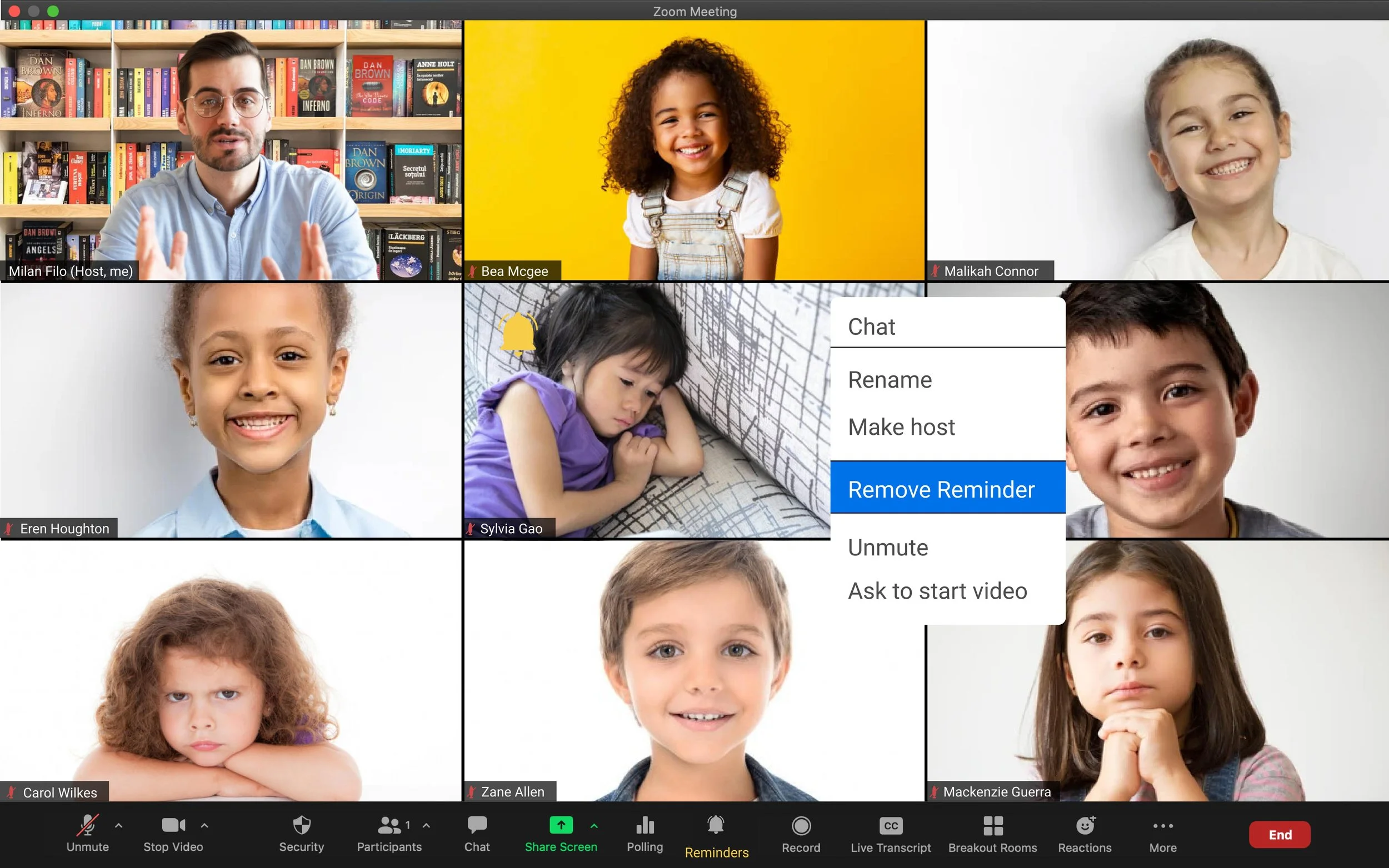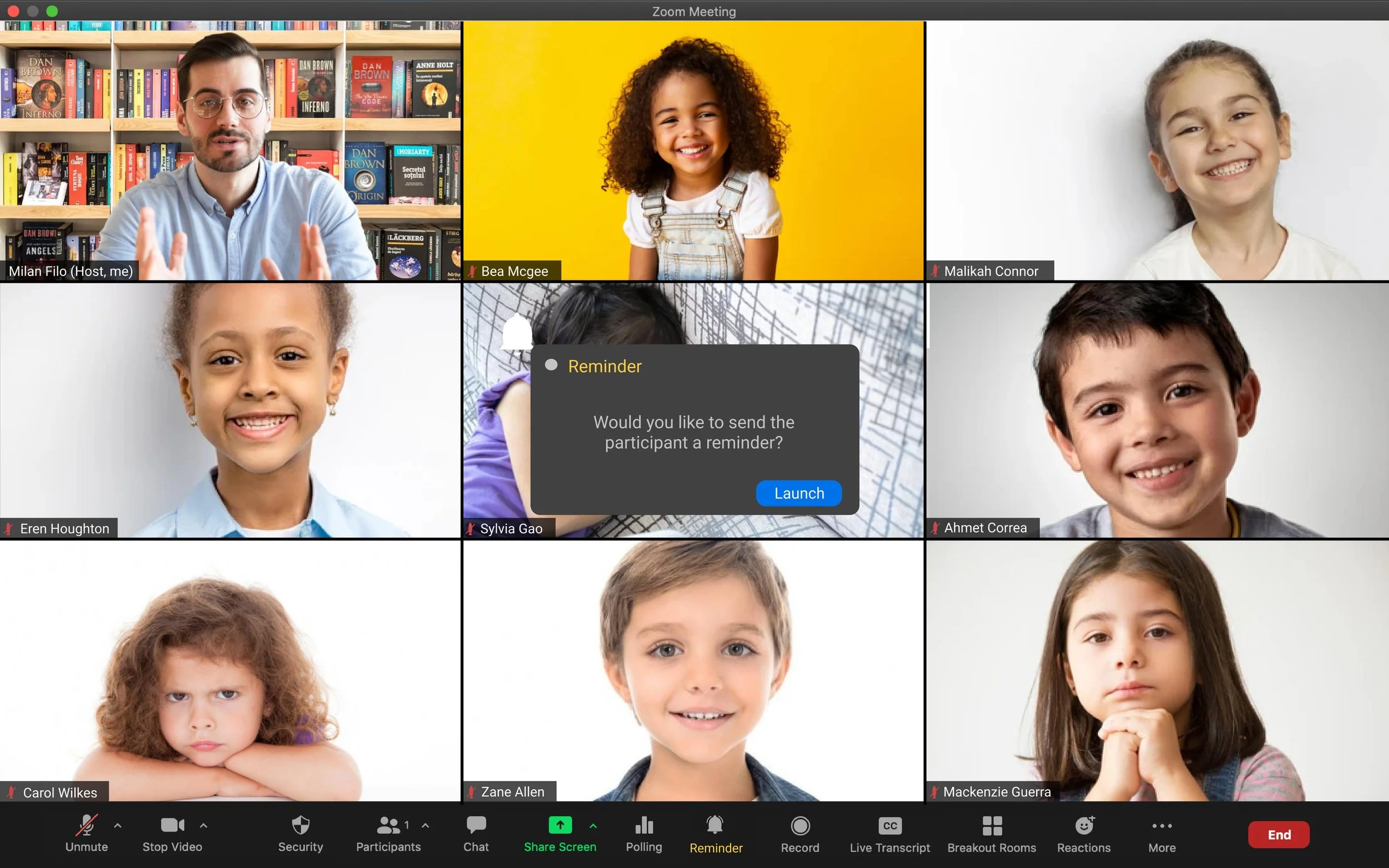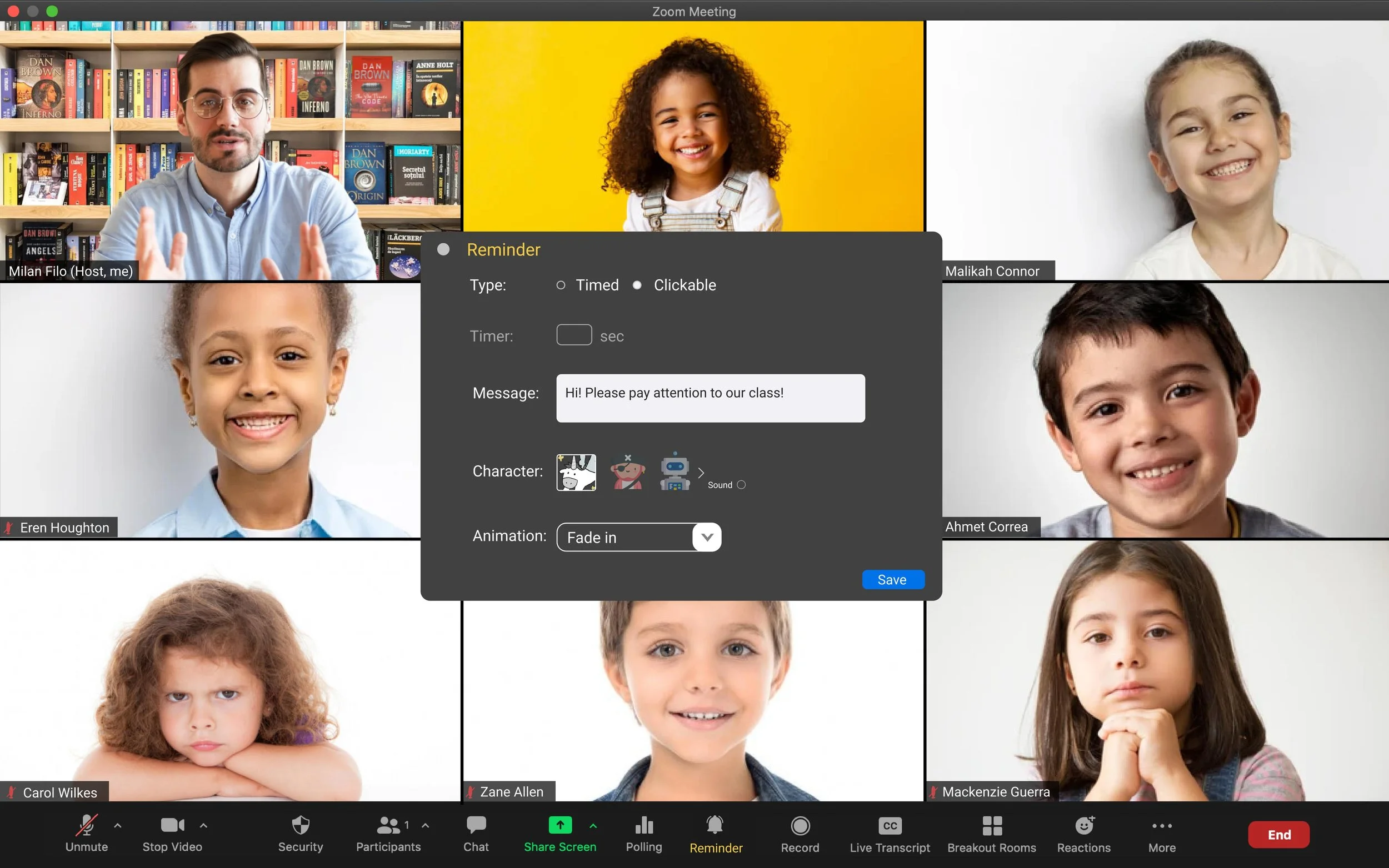 Reminders are customizable visual pop-ups that help teachers with keeping their students engaged. For example, when students become unresponsive, teachers can create visual reminders and send messages to let their young students know that they need to pay attention. This eliminates the need for teachers to interrupt their teaching in order to remind children to pay attention.